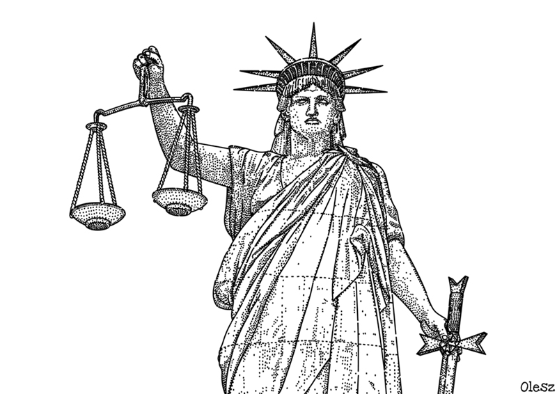 Rysunek inspirowany Statuą Wolności – nieoficjalnym symbolem wolności Nowego Jorku i Stanów Zjednoczonych oraz rzeźbą Temidy greckiej tytanidy sprawiedliwości, naturalnych i boskich praw, zwyczajów, zgromadzeń oraz wyroczni sprzed budynku sądowego im. królowej Elżbiety II w Brisbane w Australii.