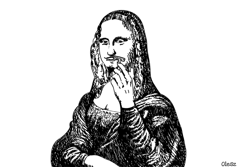 Opatrzone z pozoru enigmatycznym tytułem L.H.O.O.Q. dzieło Marcela Duchamp’a odbierane było jako aluzja do domniemanego homoseksualizmu Leonarda da Vinci. Litery tytułu czytane z francuskiego „Elle a chaud au cul” („Ona ma gorący tyłek”) wraz z domalowaną przez artystę hiszpańską bródką i wąsikami ośmieszają kultowe i niemal uświęcone dzieło sztuki.