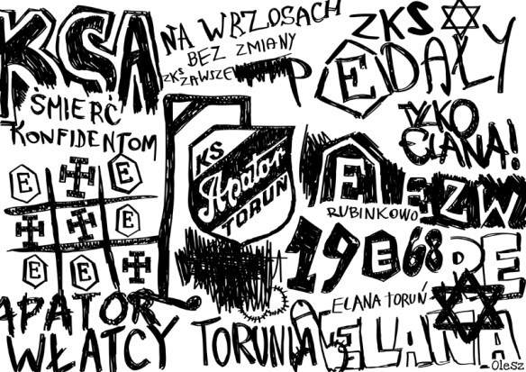 Kibice toruńskich żużlowców z bliżej nieokreślonych powodów z wzajemnością nienawidzą się z kibicami toruńskiego klubu piłkarskiego TKP Elana Toruń (powstałego w 1968 roku), w wyniku czego dochodzi między nimi do regularnych potyczek. Uliczne ściany stały się miejscem batalii pomiędzy znienawidzonymi klubami z braku możliwości rywalizacji na polu sportowym.
