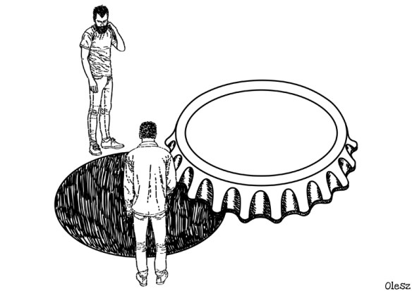 Z końcem października zakończył się strajk głodowy medyków zapoczątkowany protestem rezydentów. W dalszym ciągu nie zakończyli oni jednak walki o idee i swoje sztandarowe postulaty. W Polsce wcześniej przerabialiśmy już między innymi szeroko komentowany strajk głodowy pielęgniarek, górników chcących wymusić ustępstwa oraz wymóc na władzach państwowych korzystne dla siebie decyzje. Jak widać taka forma protestu mimo ryzyka wyczerpania organizmu, a w skrajnych przypadkach nawet głodowej śmierci, dostrzeżona przez prasę, radio i telewizję może okazać się skuteczną formą ubiegania się o swoje racje. Czy każda grupa zawodowa może liczyć jednak na poważne traktowanie w przypadku podjęcia takiej formy strajku? W lipcu tego roku w Toruniu miał miejsce osamotniony 8 dniowy strajk głodowy artysty Arka Pasożyta z Grupy nad Wisłą. Nie przyniósł on jednak oczekiwanego przez artystę, jak i całą grupę artystyczną rezultatu. Ze względu na niewystarczającą medialność całej akcji został on zignorowany przez toruńskich urzędników, którzy jak okazało się w późniejszym komentarzu nie mają zastrzeżeń co do funkcjonowania toruńskich instytucji kulturalnych. Artysta w przeciwieństwie do przedstawionego przeze mnie rysunku na szczęście przeżył cały protest, mimo interwencji pogotowia ratunkowego ostatniego dnia strajku. Czy pomiędzy politykami, urzędnikami a społeczeństwem nie może działać sprawnie funkcjonująca platforma dialogu, by nikt nie był więcej zmuszony uciekać się do szantażu emocjonalnego w tak skrajnej formie, w celu wywalczenia określonych postulatów?