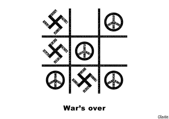 Celowe nawiązanie do gry strategicznej „Kółko i Krzyżyk” w głębszym przekazie odnosi się do znaku pacyfy – symbolu pokoju, a także starożytnego symbolu Ariów – swastyki, zaczerpniętej przez niemieckich nazistów. W dniu dzisiejszym 8 maja obchodzimy 75. rocznicę kapitulacji III Rzeszy kończącej II Wojnę Światową w Europie w 1945 roku.