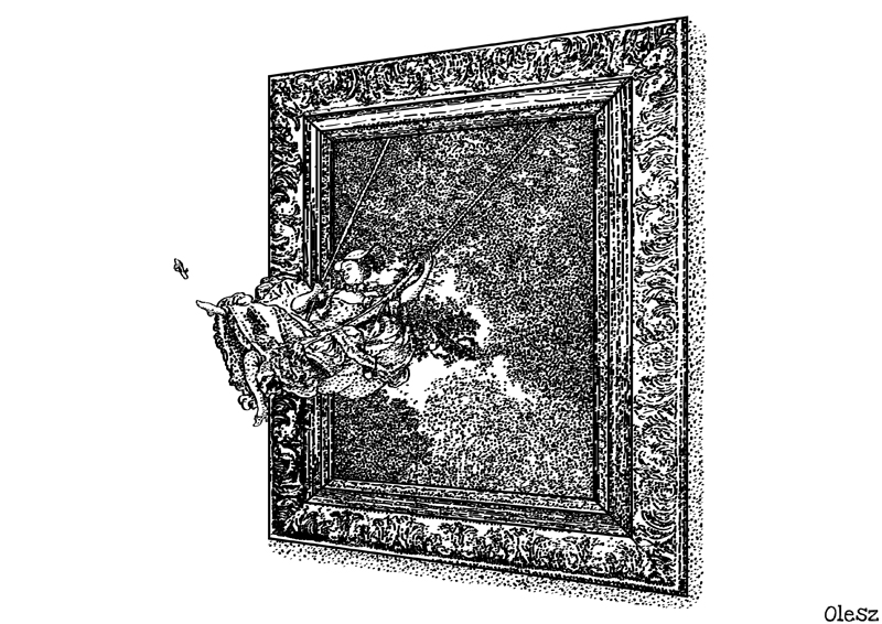 Inspiracją do stworzenia rysunku był rokokowy obraz francuskiego malarza Jeana-Honoré Fragonarda pt.”Huśtawka”. Dzięki wspomnieniom dramaturga Charles’a Collé’a dowiadujemy się, że zleceniodawcą obrazu miał być anonimowy dworzanin lub związany z Kościołem baron de Saint-Julien, który chciał być przedstawiony we frywolny sposób: oglądający nogi swojej kochanki siedzącej na huśtawce napędzanej przez biskupa. Pierwotnie autorem zlecenia miał być Gabriel François Doyen, ten jednak cieszący się renomą malarza religijnego odrzucił propozycję i zasugerował Fragonarda, który ostatecznie przyjął zlecenie. „Huśtawka”zrobiła furorę na francuskich salonach. Dziś uważana jest za najlepsze dzieło, jakie pozostawił po sobie francuski malarz, plasując się w czołówce XVIII-wiecznego malarstwa rokoko.
