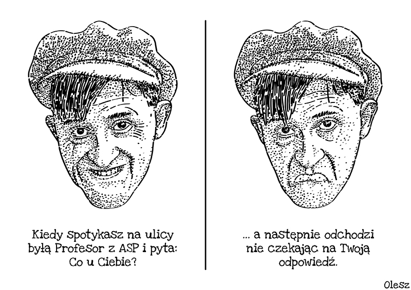 Wiadomo nie od dziś, że życie pisze najlepsze scenariusze. Do stworzenia tego rysunkowego mema zainspirowało mnie wspomnienie jednego z kolegów, z którym miałem przyjemność studiować na poznańskiej Akademii Sztuk Pięknych :).