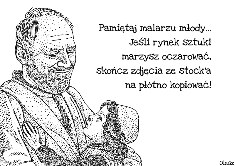 Rysunek zainspirowany obrazem autorstwa Domenico Ghirlandaio, włoskiego malarza z okresu quattrocento, przedstawiciela szkoły florenckiej, pt. „Starzec i chłopiec” (lub „Starzec z wnukiem”) z 1490 roku. Tytułowy starzec w mojej grafice został przewrotnie zastąpiony postacią Andrása Arato, czyli gwiazdy internetowych memów, który znany jest szerszej publice jako „dziwny pan ze Stocka” lub „ukrywający ból Harold”.