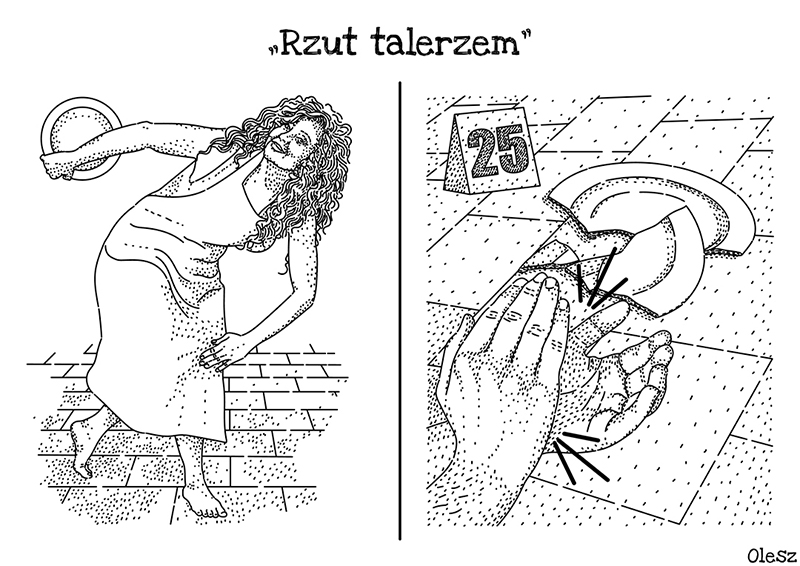 Inspiracji do stworzenia rysunku należy szukać w rzeźbie z V w. p.n.e. pt. ”Dyskobol” autorstwa Myrona, jednego z najwybitniejszych rzeźbiarzy greckich. Postać atlety rzucającego dyskiem została zastąpiona postacią Magdy Gessler – polskiej restauratorki, właścicielki oraz współwłaścicielki kilkunastu restauracji oraz osobowości telewizyjnej najlepiej znanej z programu „Kuchenne rewolucje” oraz z roli jurorki w programie „MasterChef”. Słynne już tłuczenie talerzy to oczywiście motyw dobrze znany widzom programu telewizyjnego „Kuchenne rewolucje”, w którym ekscentryczna restauratorka niejednokrotnie dawała upust swoim emocjom w odpowiedzi na poziom serwowanych dań, które miała przyjemność lub bardziej nieprzyjemność degustować w ramach programu 🙂